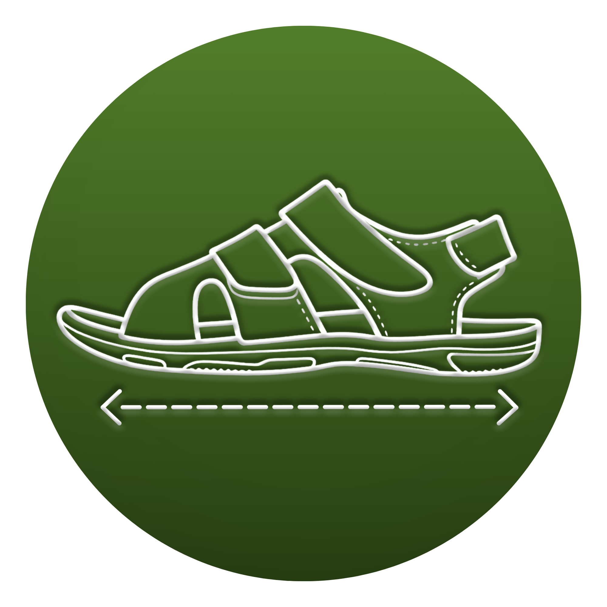 ✔ Dobbelt velcro-pasformsystem – Tilpas pasformen over flere fodzoner for heldagskomfort. Særligt nyttigt for personer med brede fødder, hævelse eller følsomhed.