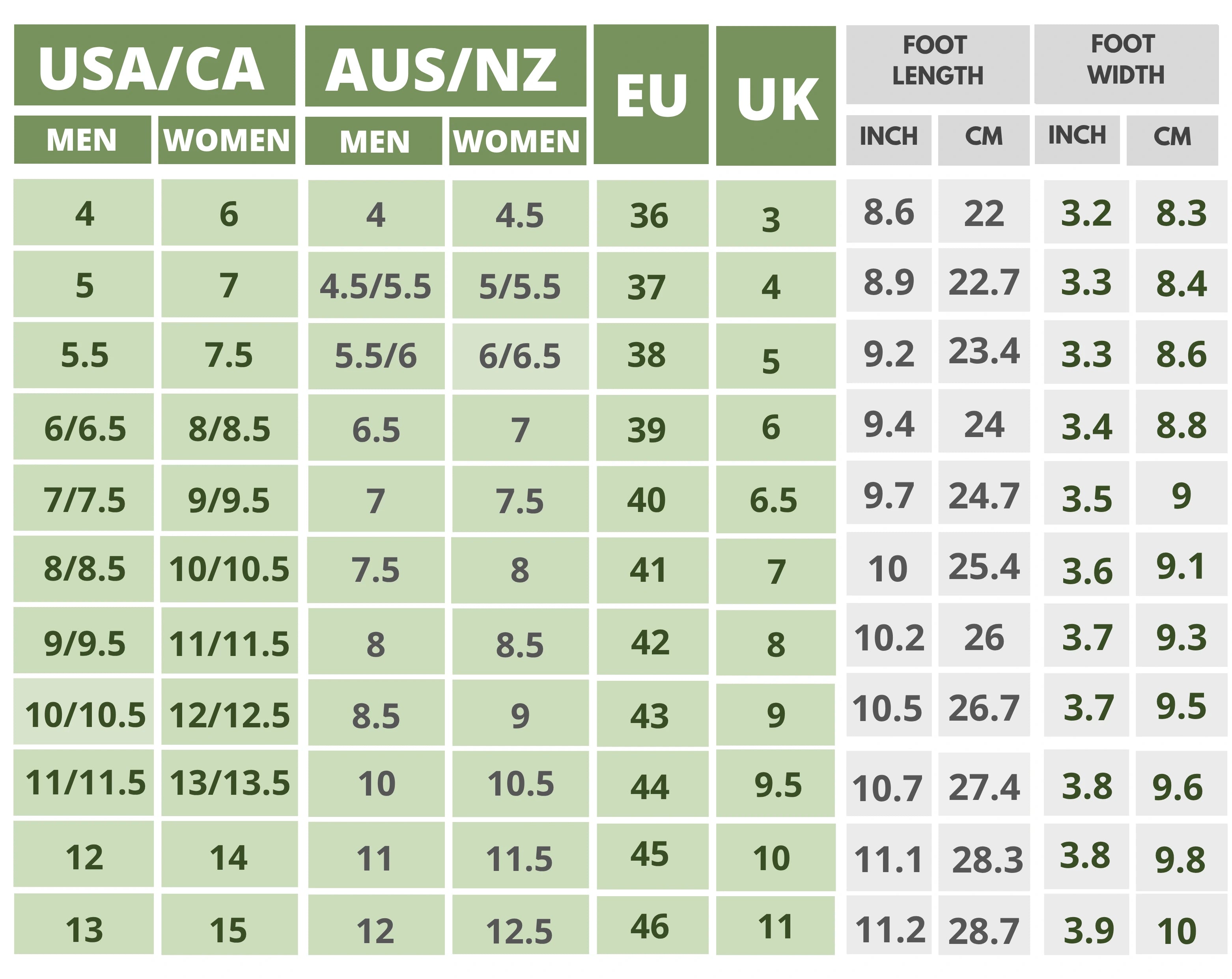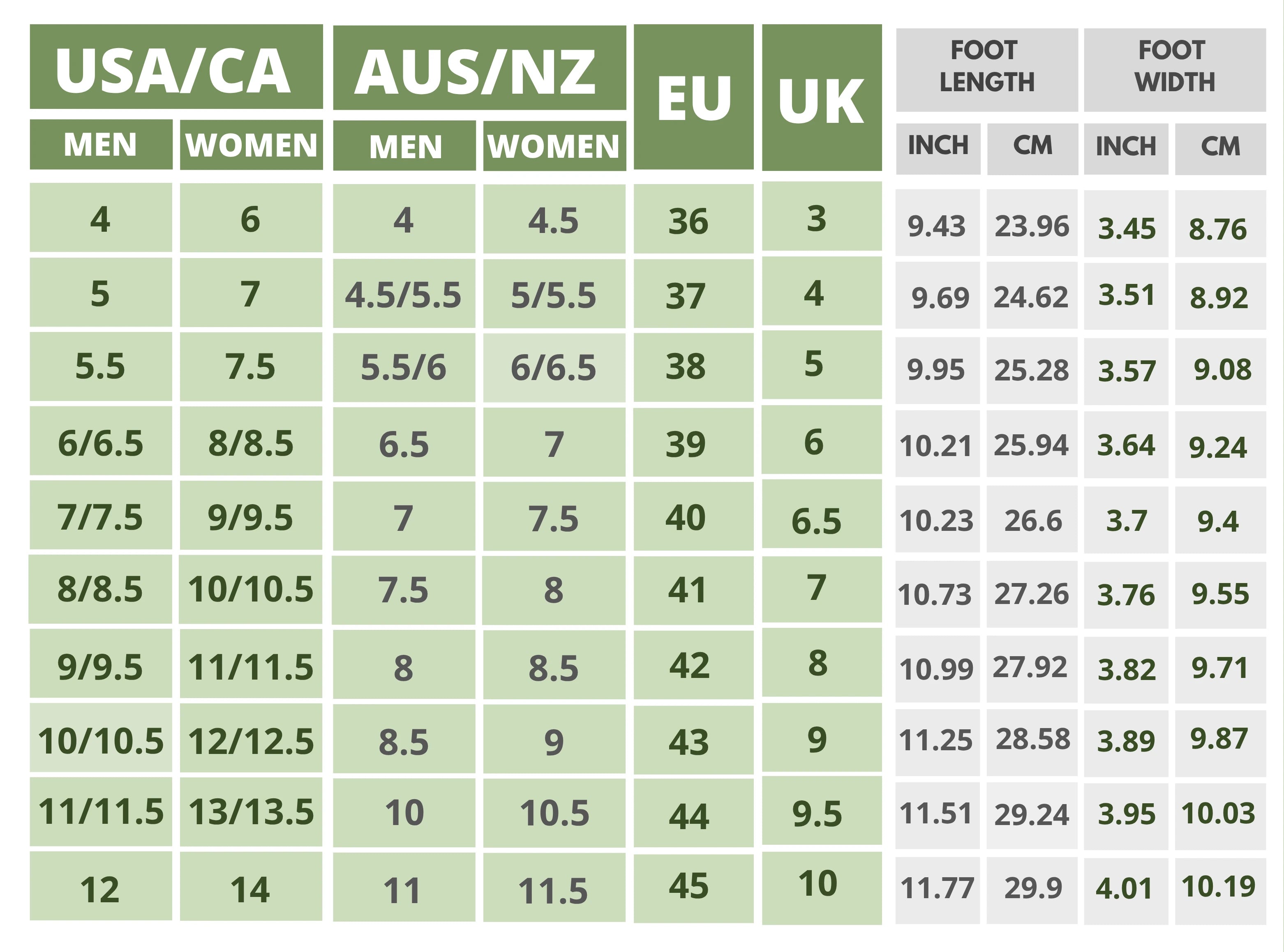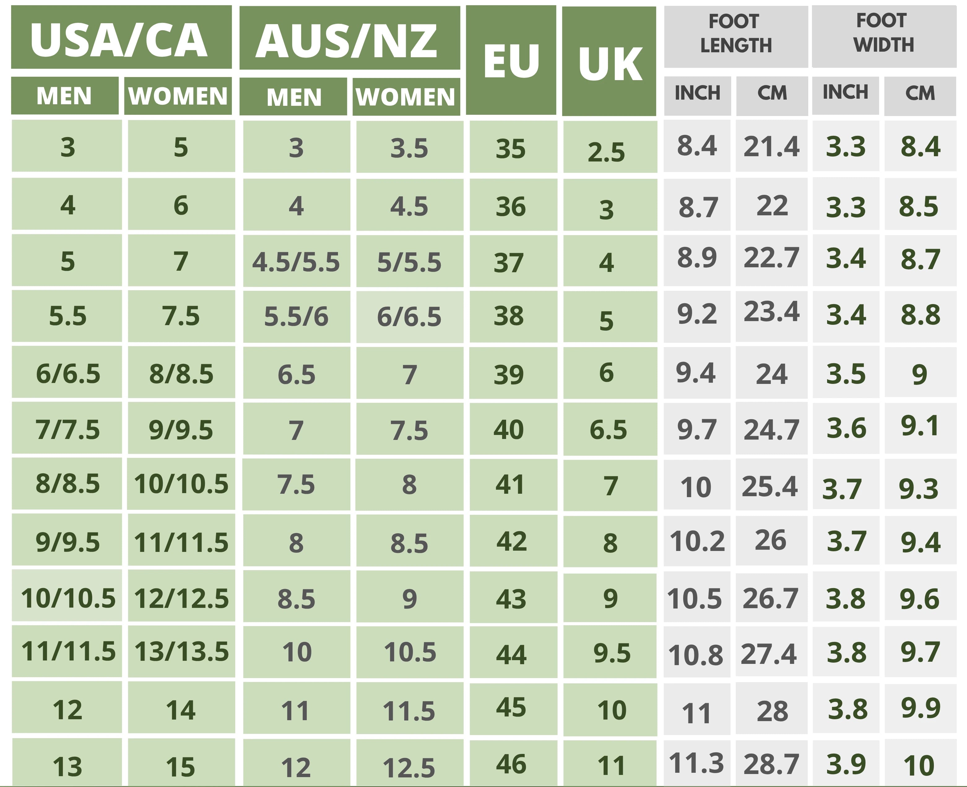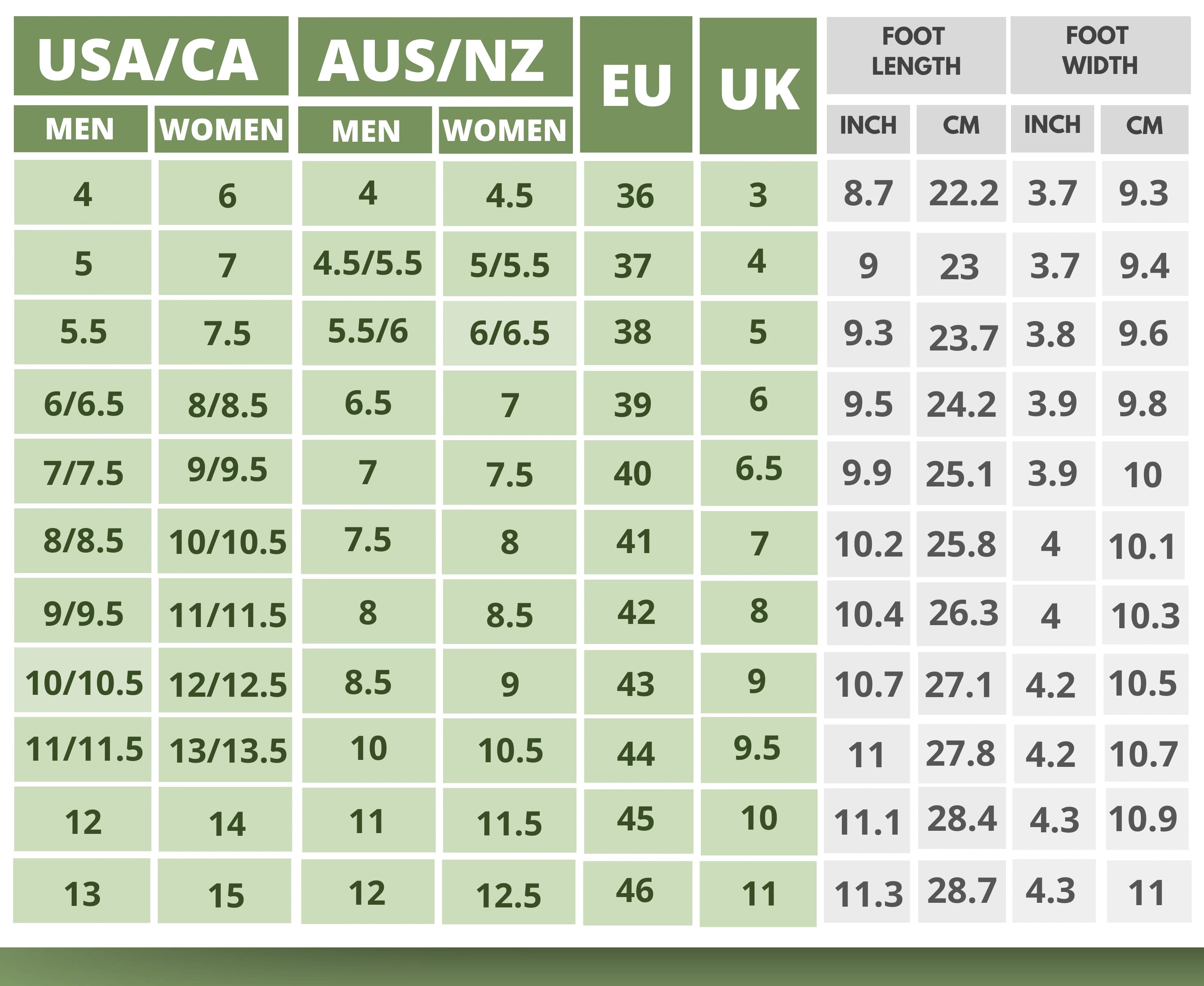 Click On the Shoe Name to Find The Size Chart